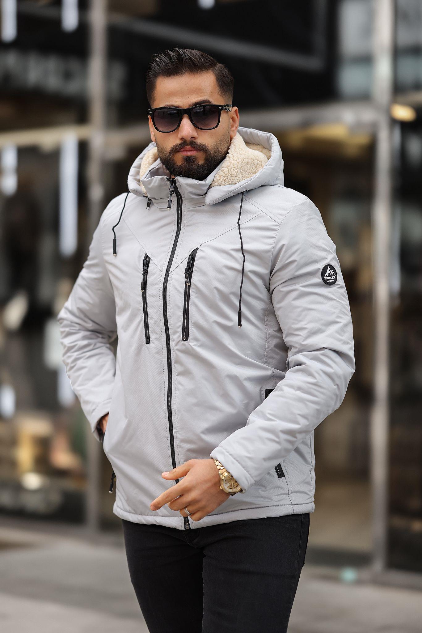 Stone Erkek Kürk Astarlı Su ve Rüzgar Geçirmez Çıkarılabilir Kapüşonlu Uzun Gri Kaban – 5 Cepli, Regular Kalıp